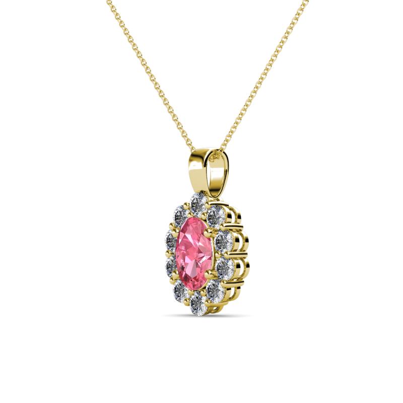 Oval Cut (6x4 mm) Pink Tourmaline and Diamond Womens Halo Pendant Necklace 0.75 ctw 14K Yellow Gold.Included 18 Inches 14K Yellow Gold Chain More Details ...