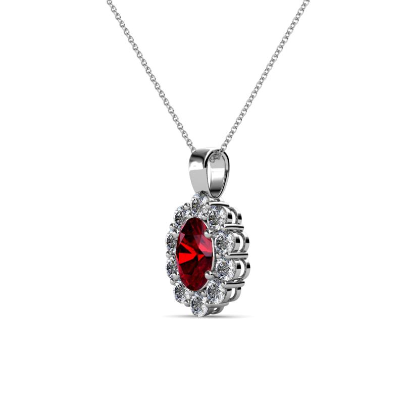 Oval Cut (6x4 mm) Ruby and Diamond Womens Halo Pendant Necklace 0.83 ctw 14K White Gold.Included 18 Inches 14K White Gold Chain More Details ...