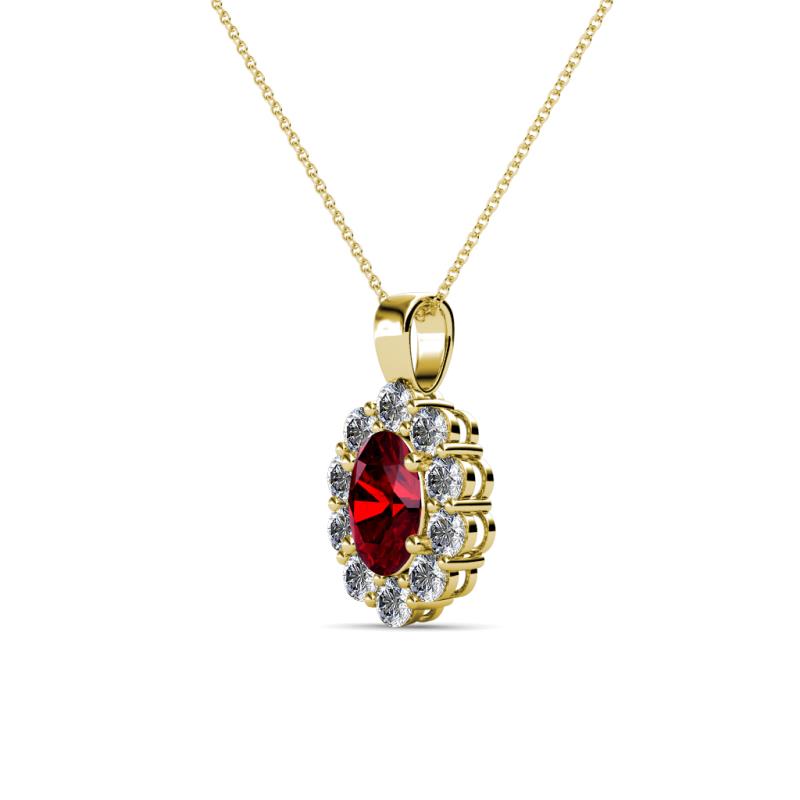 Oval Cut (6x4 mm) Ruby and Diamond Womens Halo Pendant Necklace 0.83 ctw 14K Yellow Gold.Included 18 Inches 14K Yellow Gold Chain More Details ...