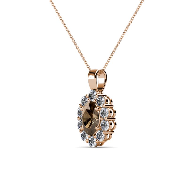 Oval Cut (6x4 mm) Smoky Quartz and Diamond Womens Halo Pendant Necklace 0.75 ctw 14K Rose Gold.Included 18 Inches 14K Rose Gold Chain More Details ...