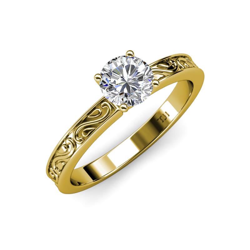 GIA Certified (6.50 mm) Round Diamond 1.00 ct Scroll Women Solitaire Engagement Ring 14K Yellow Gold More Details ...