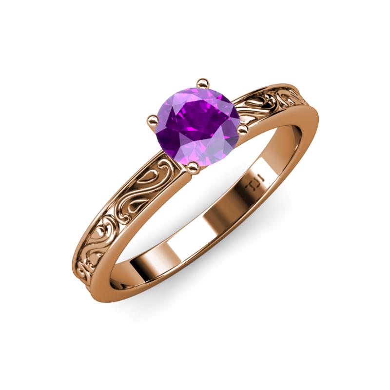 Round (6.50 mm) Amethyst 0.87 ct Scroll Women Solitaire Engagement Ring 14K Rose Gold More Details ...