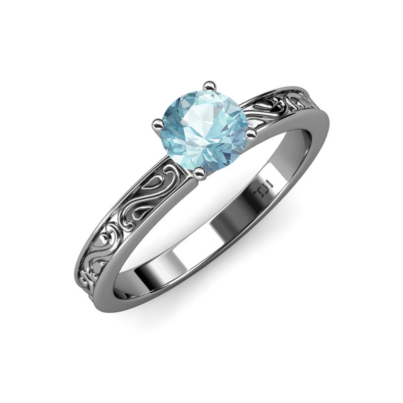 Round (6.50 mm) Aquamarine 0.87 ct Scroll Women Solitaire Engagement Ring 14K White Gold More Details ...