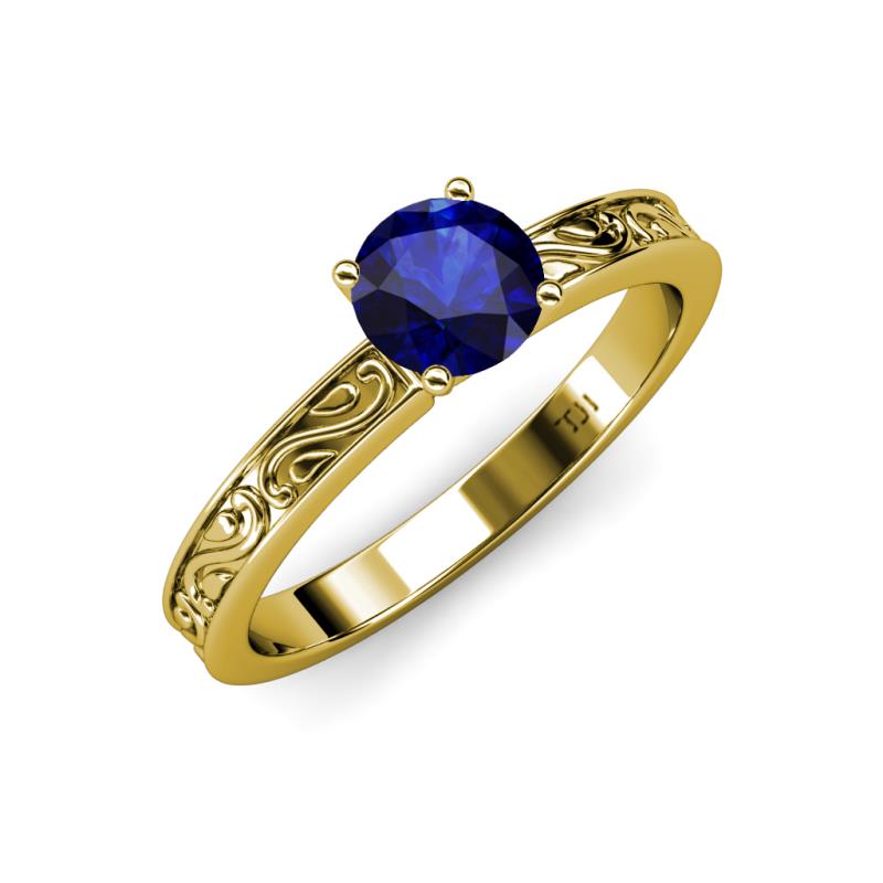 Round (6.00 mm) Blue Sapphire 1.15 ct Scroll Women Solitaire Engagement Ring 18K Yellow Gold More Details ...