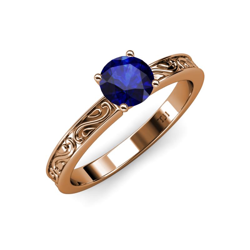 Round (6.00 mm) Blue Sapphire 1.15 ct Scroll Women Solitaire Engagement Ring 18K Rose Gold More Details ...