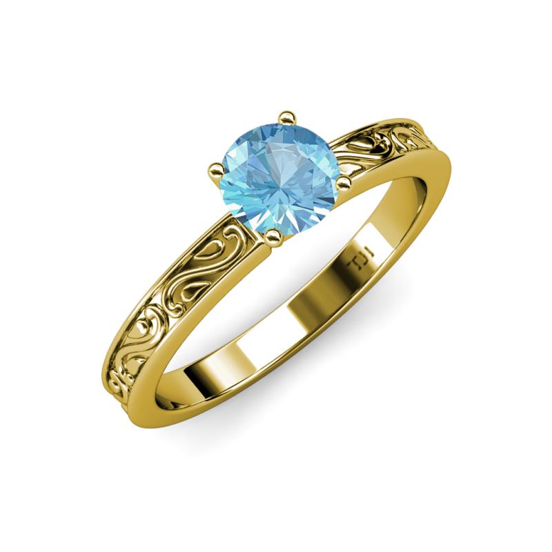 Round (6.50 mm) Blue Topaz 0.95 ct Scroll Women Solitaire Engagement Ring 14K Yellow Gold More Details ...