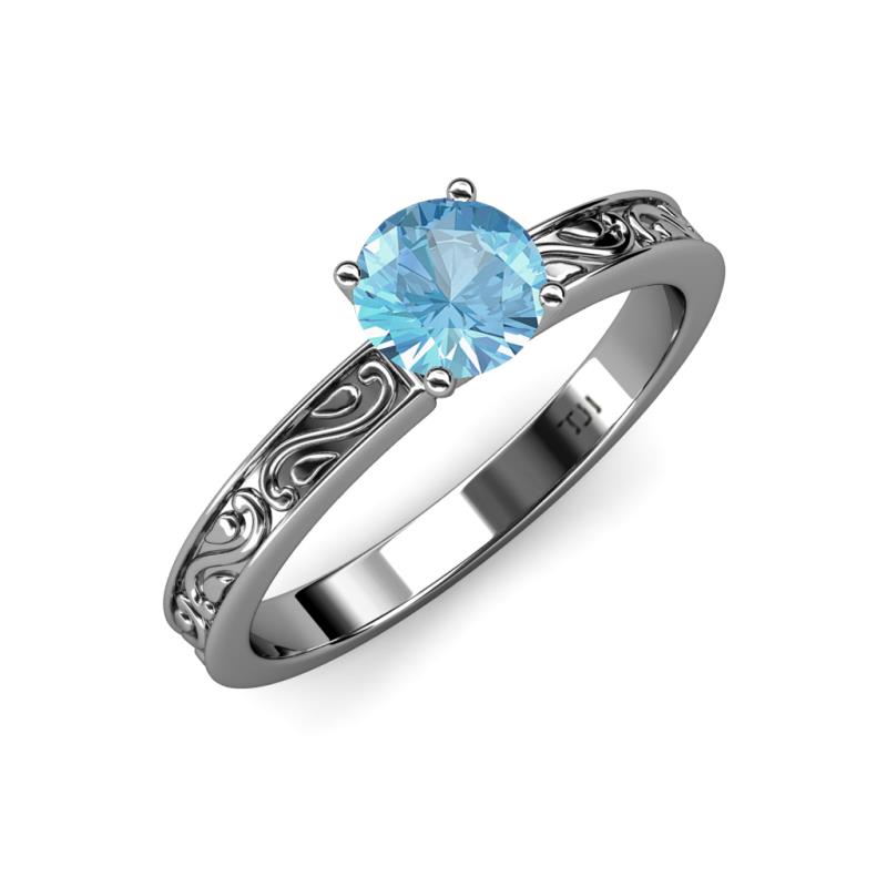 Round (6.50 mm) Blue Topaz 0.95 ct Scroll Women Solitaire Engagement Ring 18K White Gold More Details ...