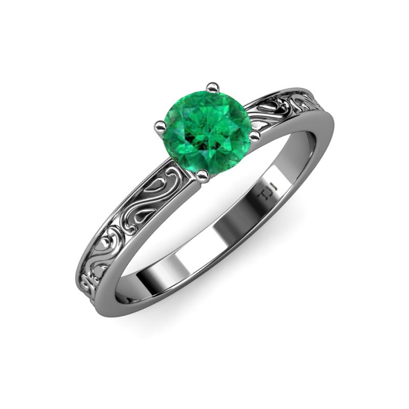 Round (6.00 mm) Emerald 0.72 ct Scroll Women Solitaire Engagement Ring 14K White Gold More Details ...