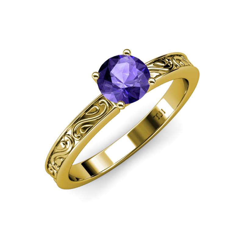 Round (6.50 mm) Iolite 0.80 ct Scroll Women Solitaire Engagement Ring 18K Yellow Gold More Details ...