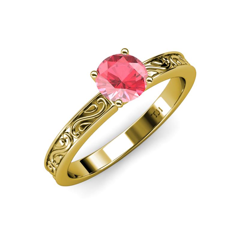 Round (6.50 mm) Pink Tourmaline 0.87 ct Scroll Women Solitaire Engagement Ring 18K Yellow Gold More Details ...