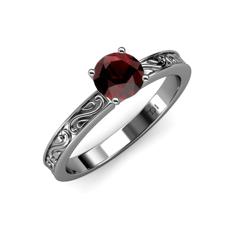 Round (6.50 mm) Red Garnet 1.05 ct Scroll Women Solitaire Engagement Ring Platinum More Details ...