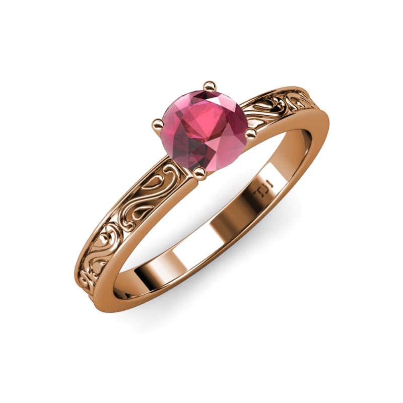 Round (6.50 mm) Rhodolite Garnet 1.00 ct Scroll Women Solitaire Engagement Ring 14K Rose Gold More Details ...
