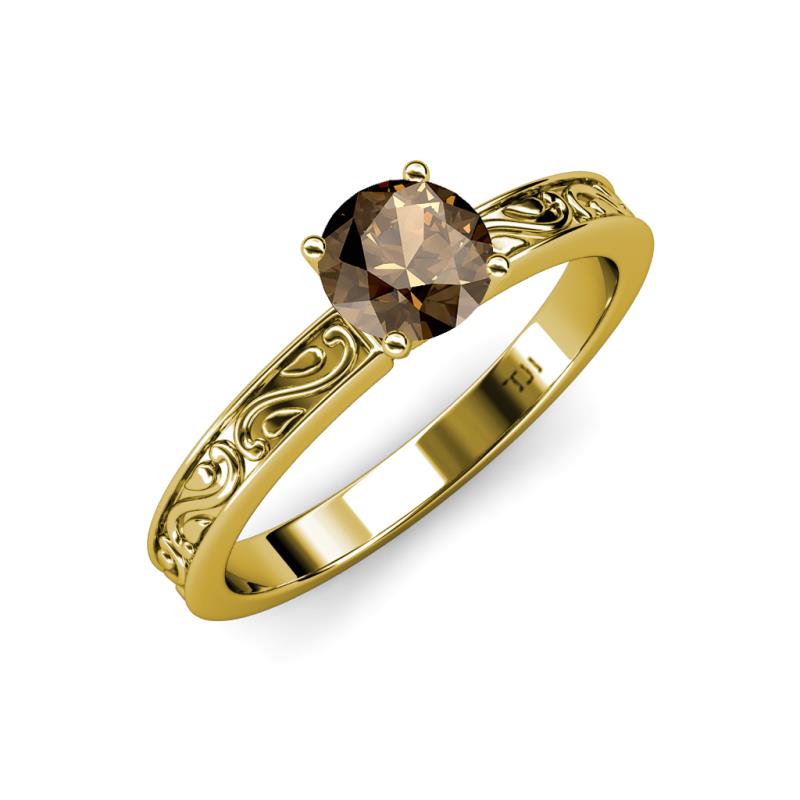 Round (6.50 mm) Smoky Quartz 1.00 ct Scroll Women Solitaire Engagement Ring 18K Yellow Gold More Details ...