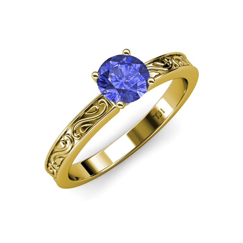 Round (6.50 mm) Tanzanite 0.92 ct Scroll Women Solitaire Engagement Ring 14K Yellow Gold More Details ...