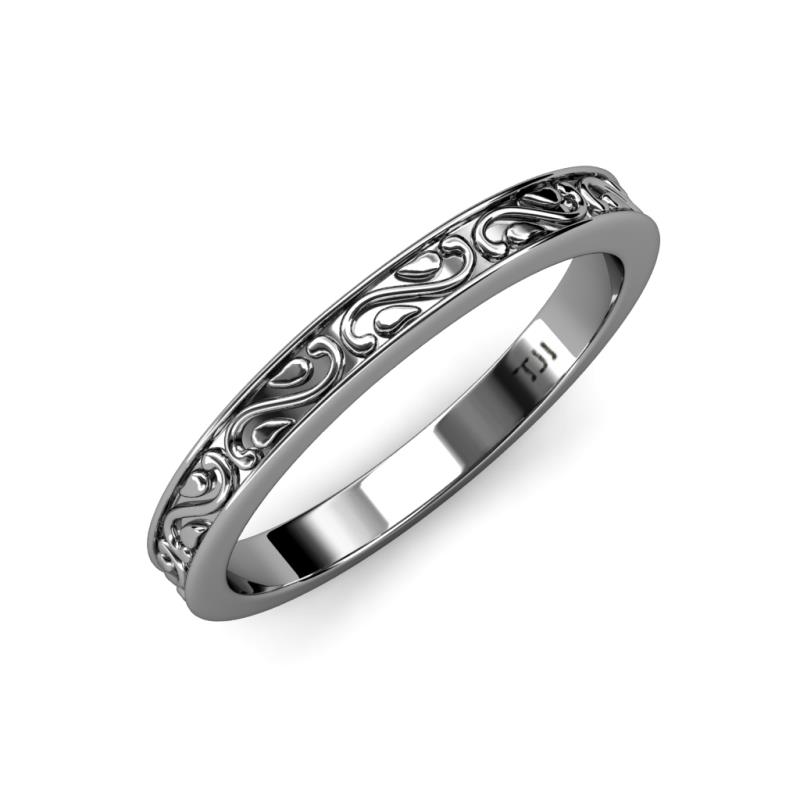 Scroll Womens Wedding Band Stackable with Milgrain Work 14K White Gold More Details ...