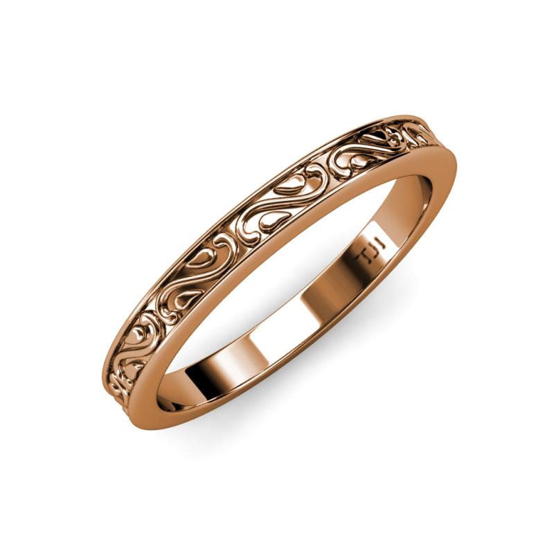 Scroll Womens Wedding Band Stackable with Milgrain Work 18K Rose Gold More Details ...