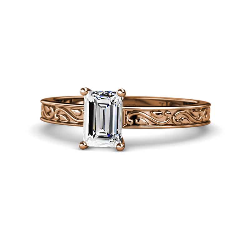 Four Prong Semi Mount Scroll Solitaire Engagement Ring in 14K Rose Gold. More Details ...