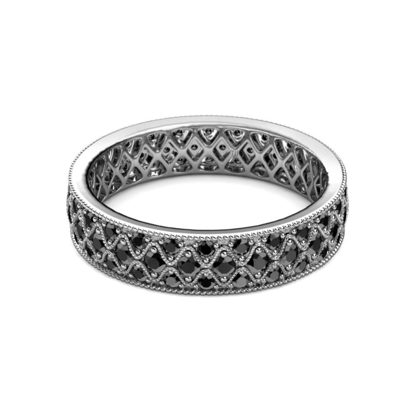 Black Diamond Three Row Milgrain Womens Eternity Ring Stackable 0.96 ctw* 14K White Gold More Details ...