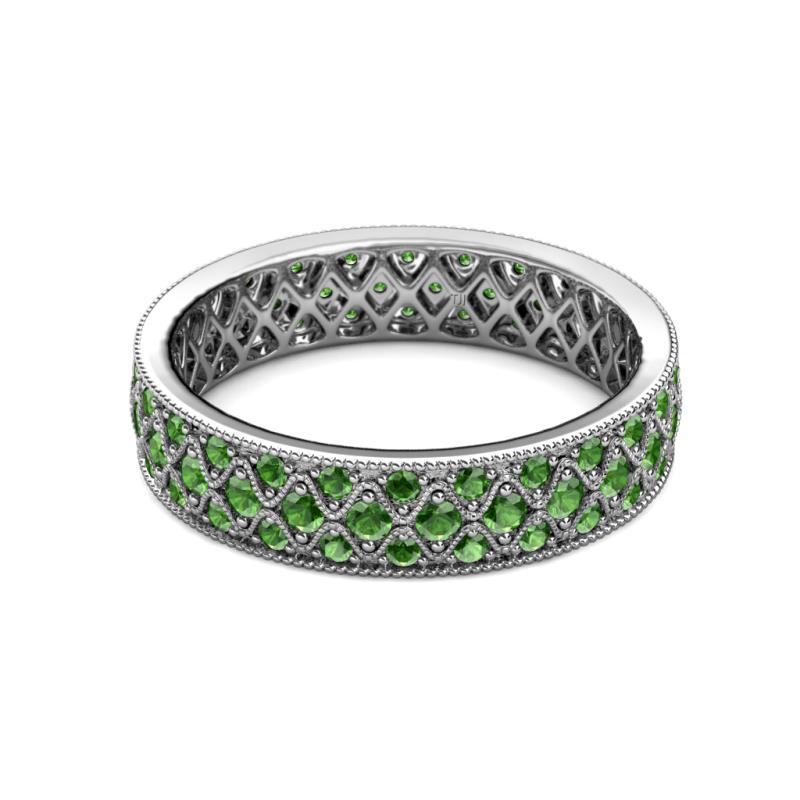Green Garnet Three Row Milgrain Womens Eternity Ring Stackable 0.96 ctw* 18K White Gold More Details ...