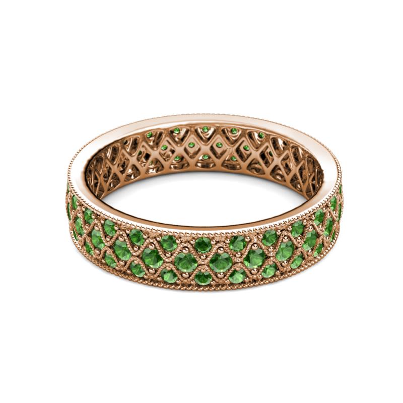 Green Garnet Three Row Milgrain Womens Eternity Ring Stackable 0.96 ctw* 18K Rose Gold More Details ...