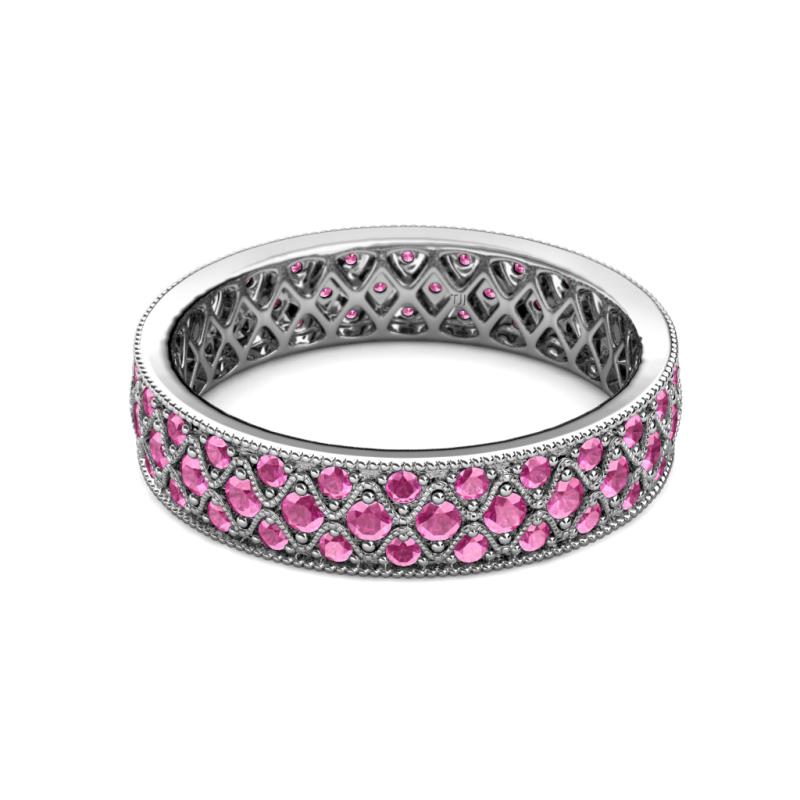 Pink Sapphire Three Row Milgrain Womens Eternity Ring Stackable 0.96 ctw* 18K White Gold More Details ...