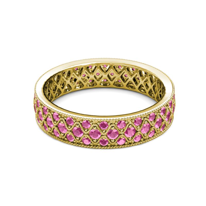 Pink Sapphire Three Row Milgrain Womens Eternity Ring Stackable 0.96 ctw* 18K Yellow Gold More Details ...