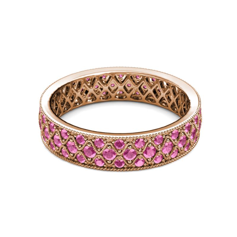 Pink Sapphire Three Row Milgrain Womens Eternity Ring Stackable 0.96 ctw* 18K Rose Gold More Details ...