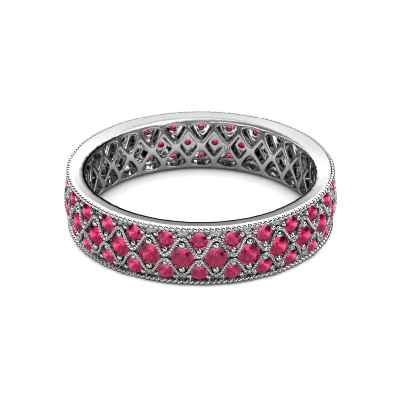 Ruby Three Row Milgrain Womens Eternity Ring Stackable 0.96 ctw* 14K White Gold More Details ...