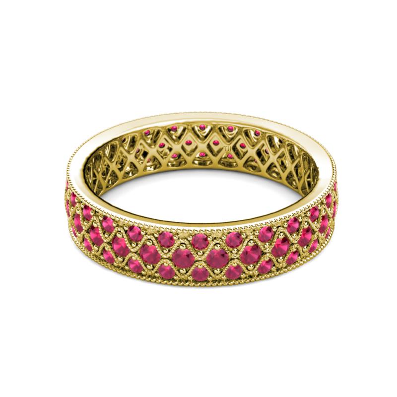 Ruby Three Row Milgrain Womens Eternity Ring Stackable 0.96 ctw* 14K Yellow Gold More Details ...