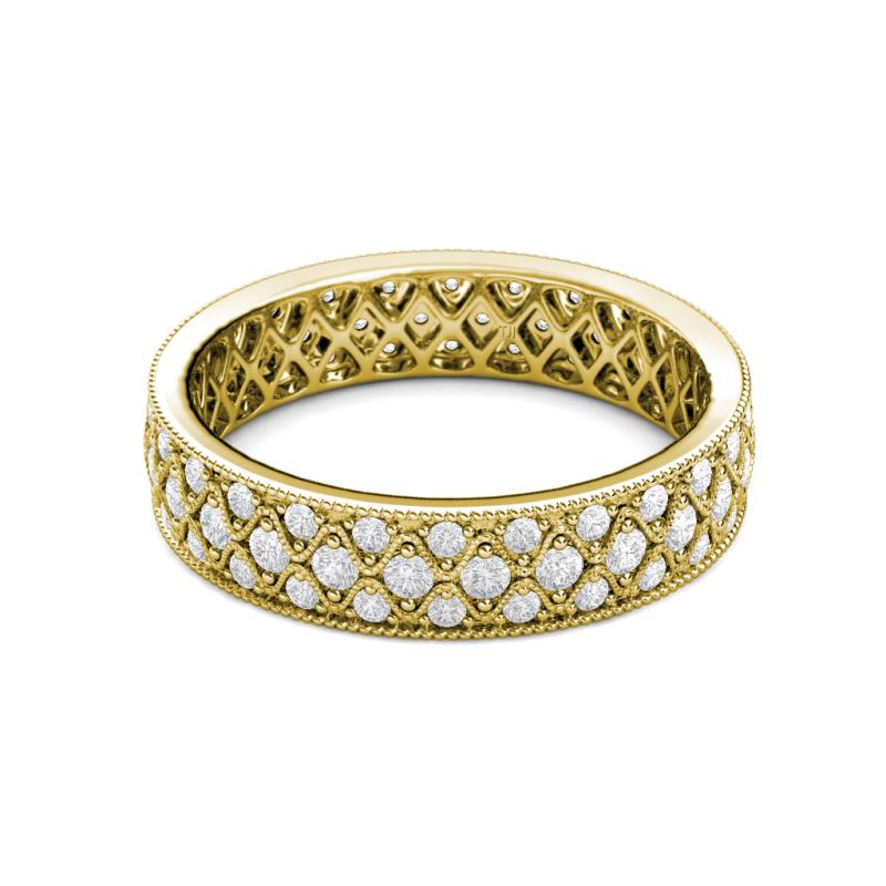 White Sapphire Three Row Milgrain Womens Eternity Ring Stackable 0.96 ctw* 14K Yellow Gold More Details ...