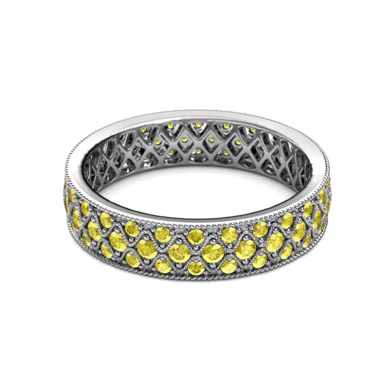 Yellow Sapphire Three Row Milgrain Womens Eternity Ring Stackable 0.96 ctw* 14K White Gold More Details ...