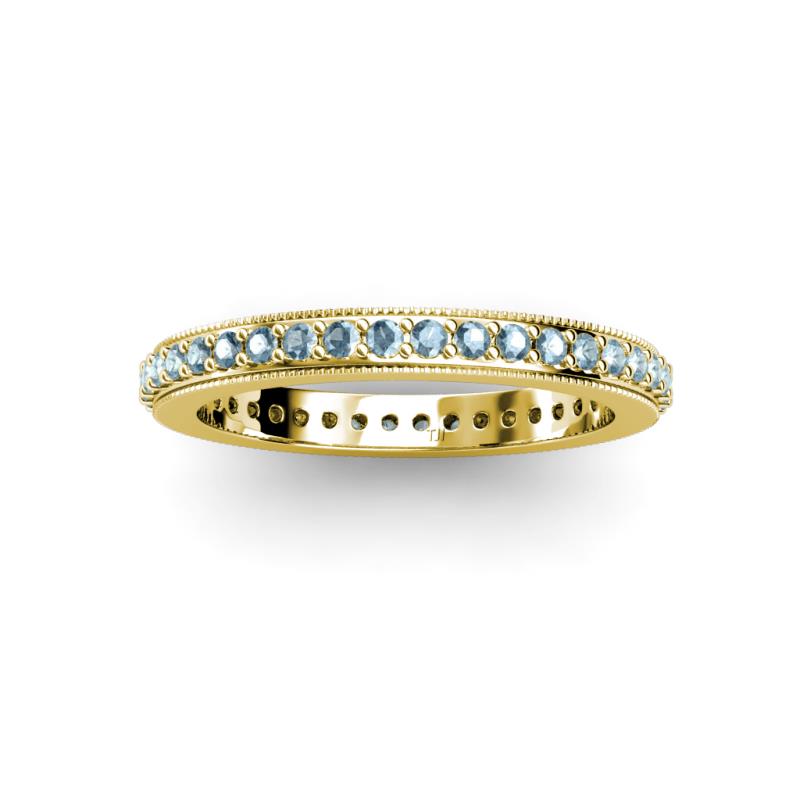 Aquamarine Micro Pave Set Eternity Band with Milgrain Work 0.43 ctw in 18K Yellow Gold. More Details ...