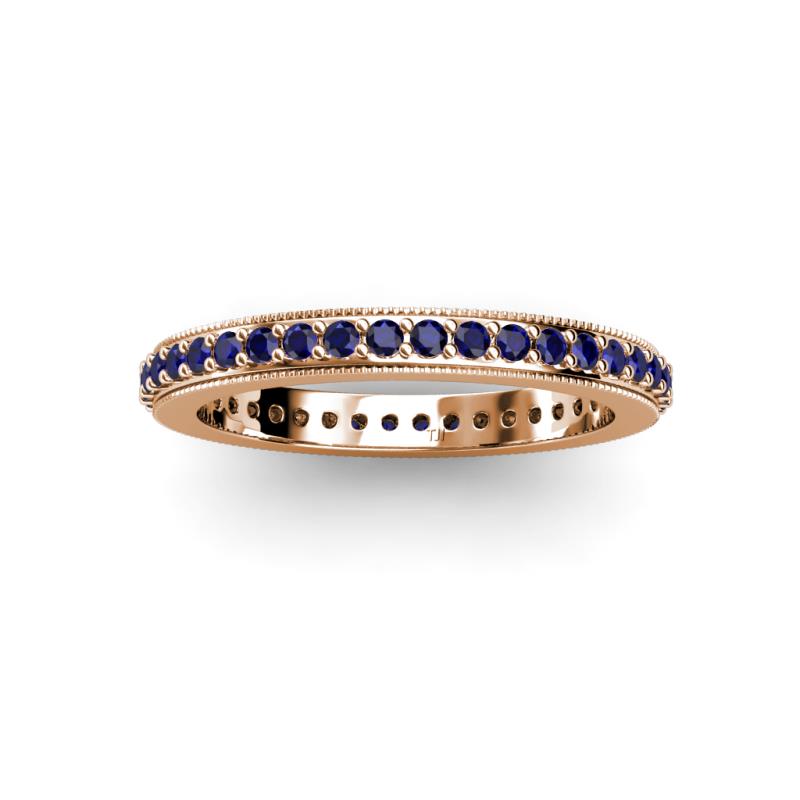 Blue Sapphire Micro Pave Set Eternity Band with Milgrain Work 0.66 ctw in 18K Rose Gold. More Details ...