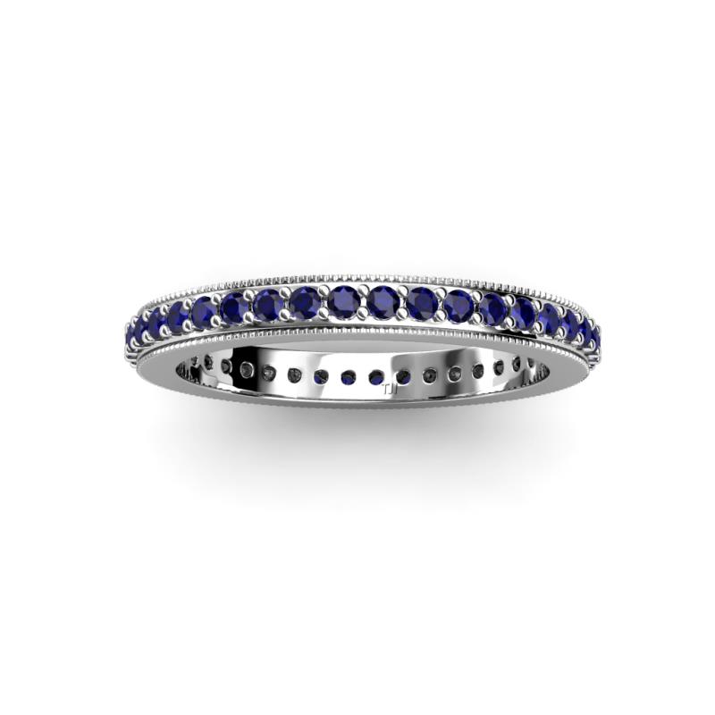 Blue Sapphire Micro Pave Set Eternity Band with Milgrain Work 0.66 ctw in Palladium. More Details ...