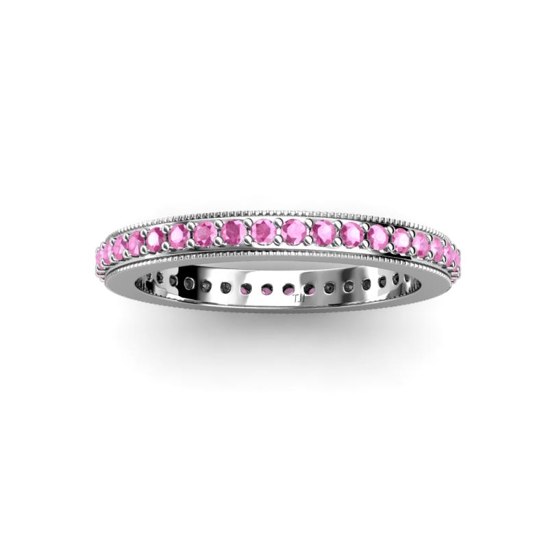 Pink Sapphire Micro Pave Set Eternity Band with Milgrain Work 0.66 ctw in 14K White Gold. More Details ...