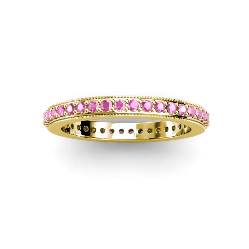Pink Sapphire Micro Pave Set Eternity Band with Milgrain Work 0.66 ctw in 18K Yellow Gold. More Details ...