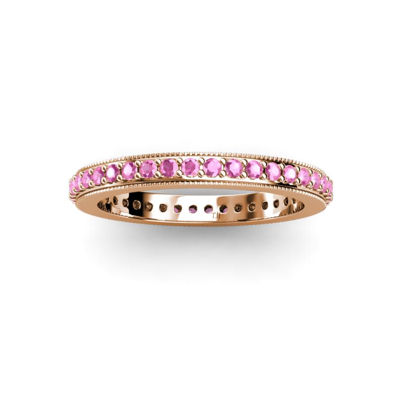 Pink Sapphire Micro Pave Set Eternity Band with Milgrain Work 0.66 ctw in 18K Rose Gold. More Details ...