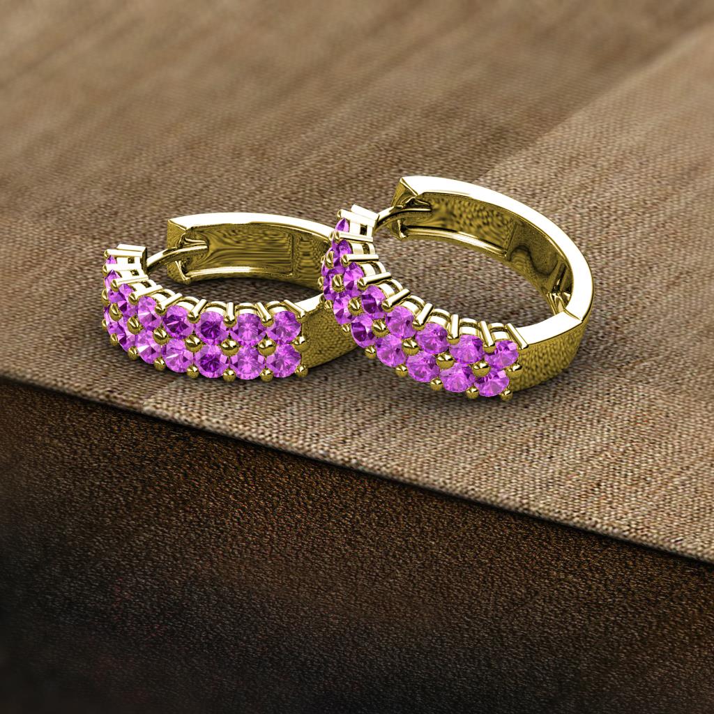 2.10 mm Round Amethyst 3/4 ctw Double Row Womens Hoop Earrings 14K Yellow Gold More Details ...