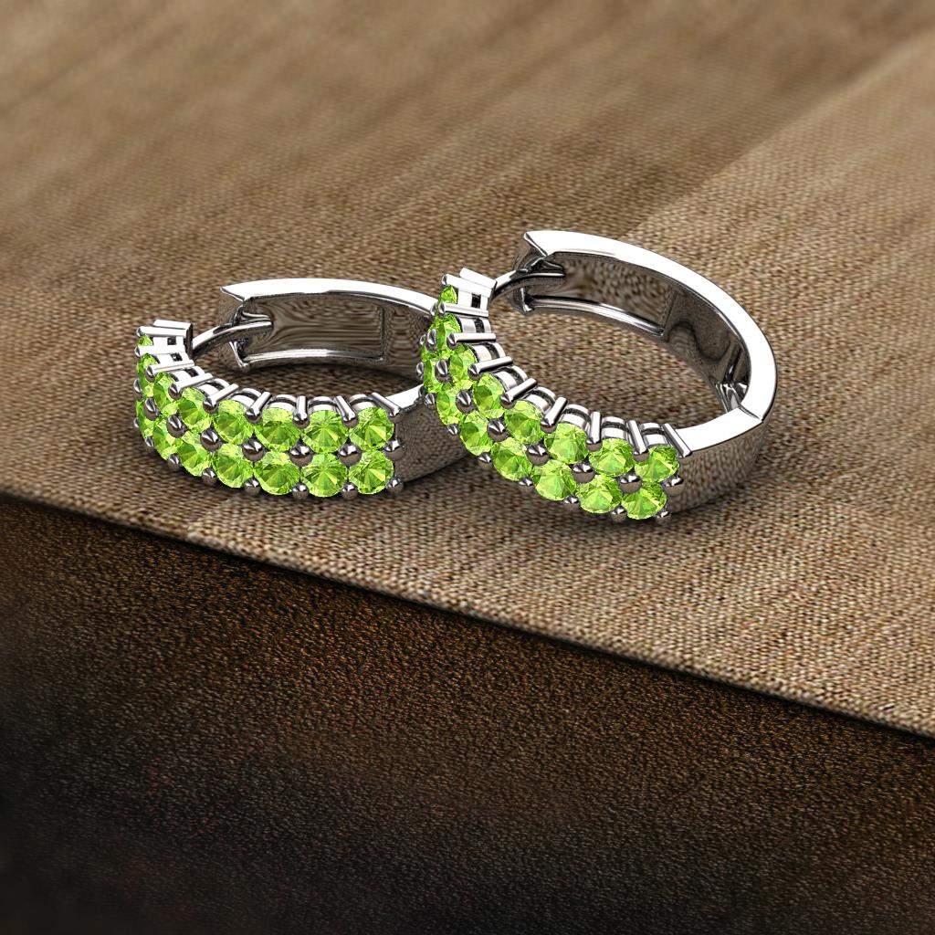 2.10 mm Round Peridot 1 1/3 ctw Double Row Womens Hoop Earrings 14K White Gold More Details ...