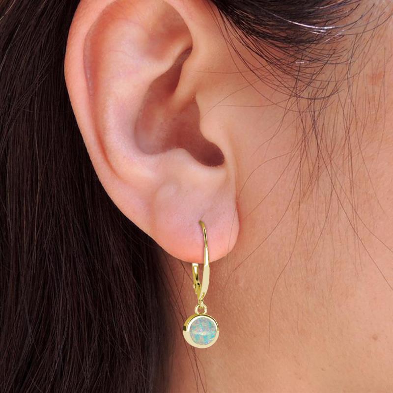 Cherish the on-trend look and secure fit of leverback Dangling Earrings with 0.70 ctw Bezel Set Opal adding a fresh look to any attire.
