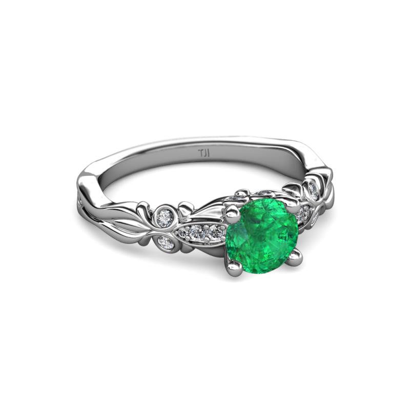 3/4 ctw Round Emerald and Diamond Butterfly Womens Engagement Ring 18K White Gold More Details ...