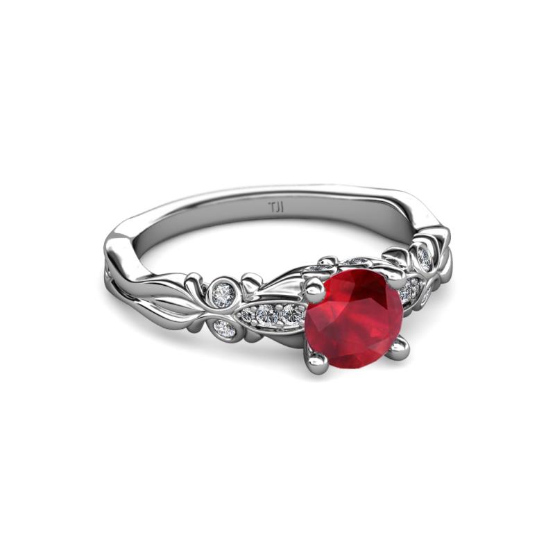 1 ctw Round Ruby and Diamond Butterfly Womens Engagement Ring 14K White Gold More Details ...