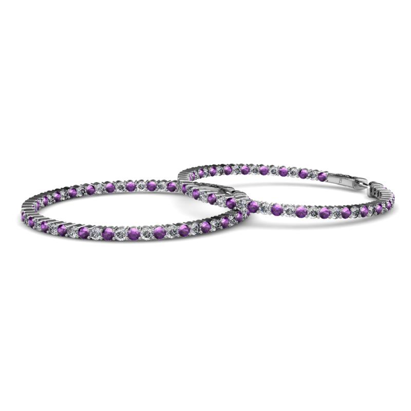 1.80 mm Round Amethyst and Lab Grown Diamond 2 1/10 ctw Common Prong Inside-Out Womens Hoop Earrings 14K White Gold More Details ...