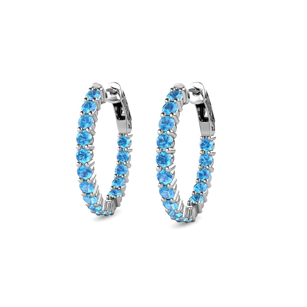 Round Blue Topaz 1/2 ctw Inside-Out Womens Hoop Earrings 14K White Gold More Details ...
