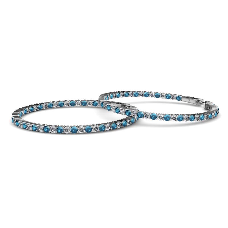 1.80 mm Round Blue and White Diamond 2 1/2 ctw Common Prong Inside-Out Womens Hoop Earrings 14K White Gold More Details ...