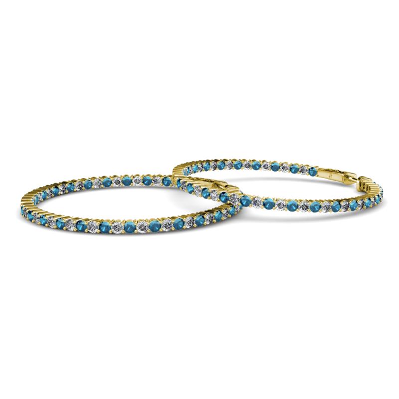 1.80 mm Round Blue and White Diamond 2 1/2 ctw Common Prong Inside-Out Womens Hoop Earrings 14K Yellow Gold More Details ...