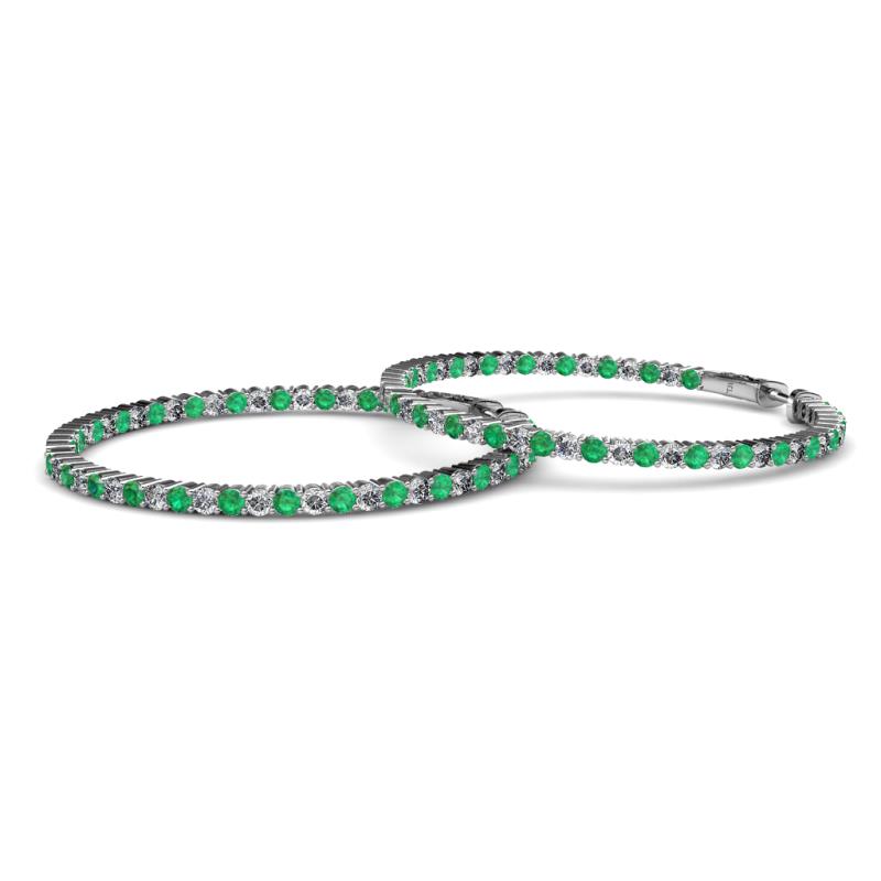1.80 mm Round Emerald and Lab Grown Diamond 2 1/10 ctw Common Prong Inside-Out Womens Hoop Earrings 14K White Gold More Details ...
