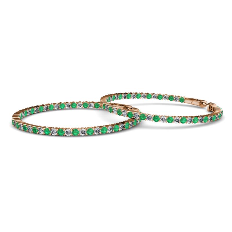 1.80 mm Round Emerald and Lab Grown Diamond 2 1/10 ctw Common Prong Inside-Out Womens Hoop Earrings 14K Rose Gold More Details ...