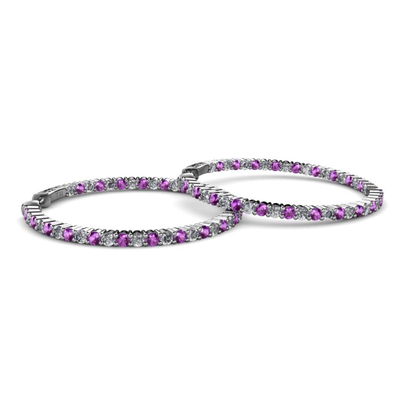 Round Amethyst and Natural Diamond 5.39 ctw Common Prong Inside Outside Women Eternity Hoop Earrings 14K White Gold More Details ...