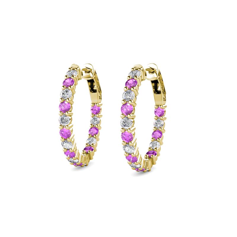 Round Amethyst and Natural Diamond 0.58 ctw Inside Outside Women Eternity Hoop Earrings 14K Yellow Gold More Details ...